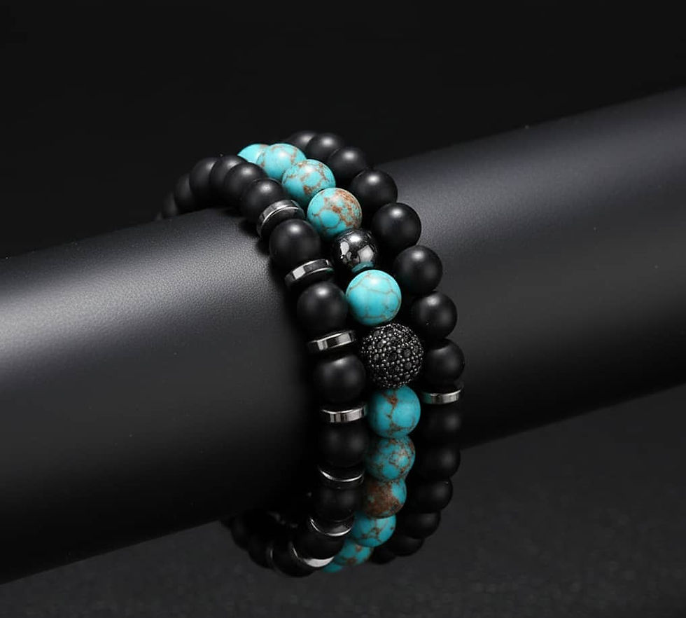 Trio de Bracelets Authentiques – Turquoise & Onyx Noir